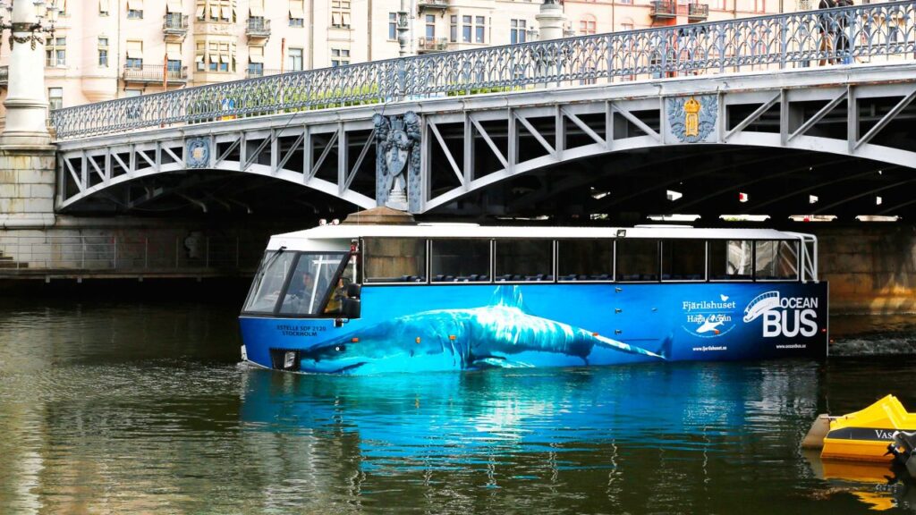 Oceanbus is not your ordinary city sightseeing bus – Not only will it show you the landmarks of Sweden’s major cities, it’ll also go for a dip into the water!